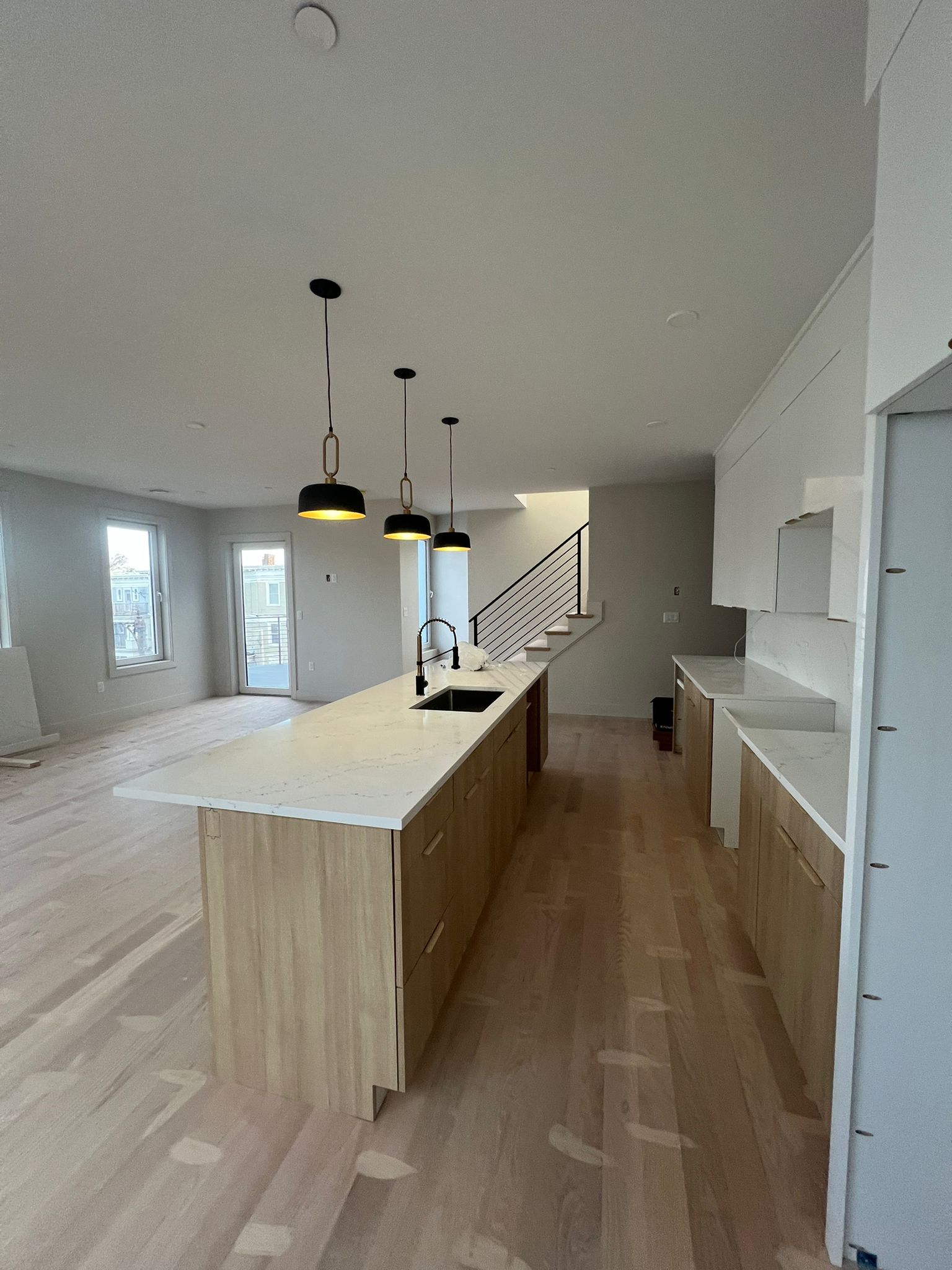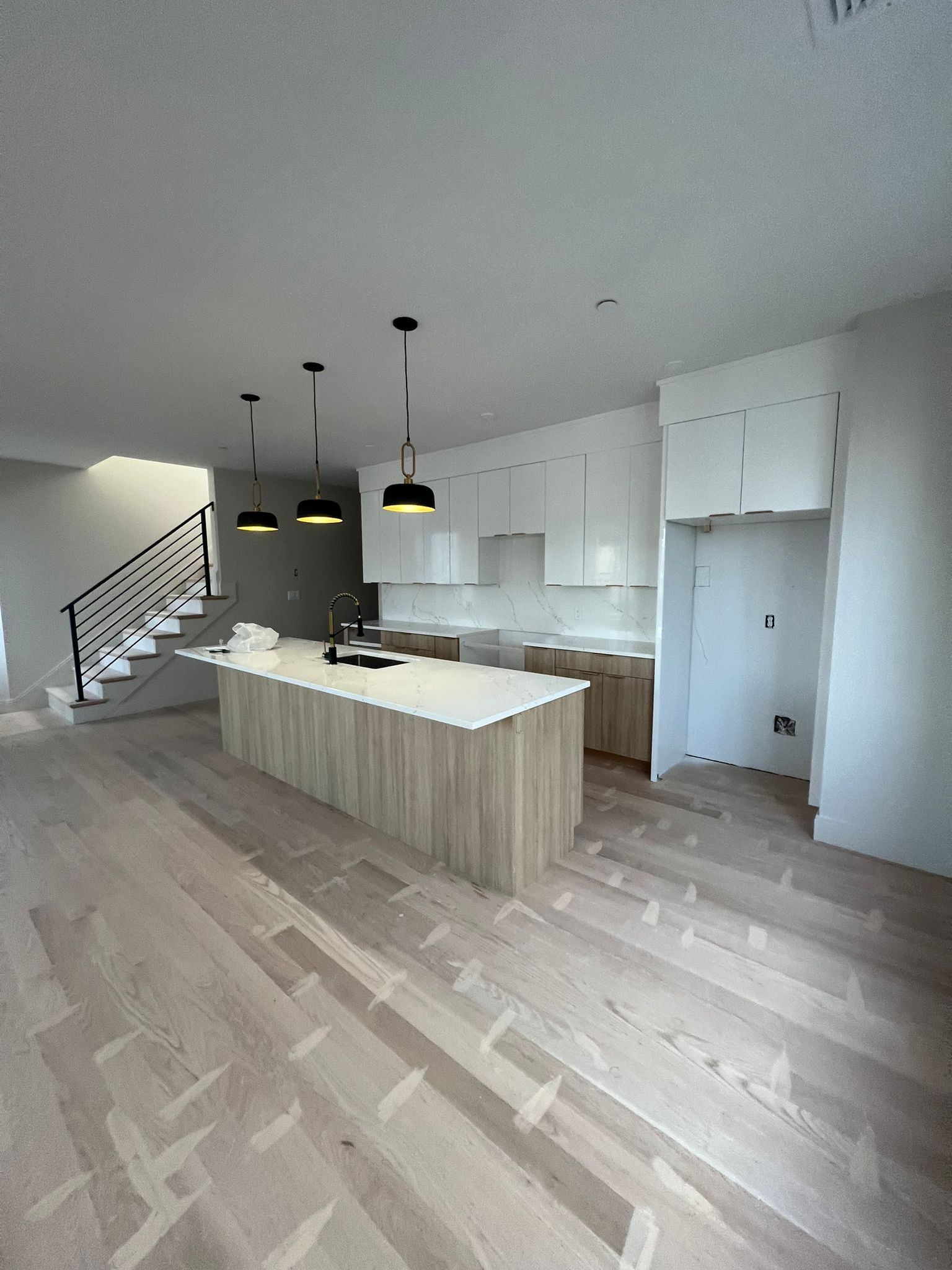 Our team handles all of the prep work including protecting floors, patching all wall imperfections with premium self-priming compound, and sanding walls. Clean-up is also taken care of post-completion.